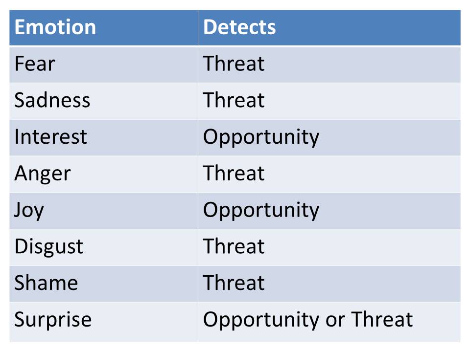 Our emotions are designed to detect threats and opportunities in our internal and external environments.1